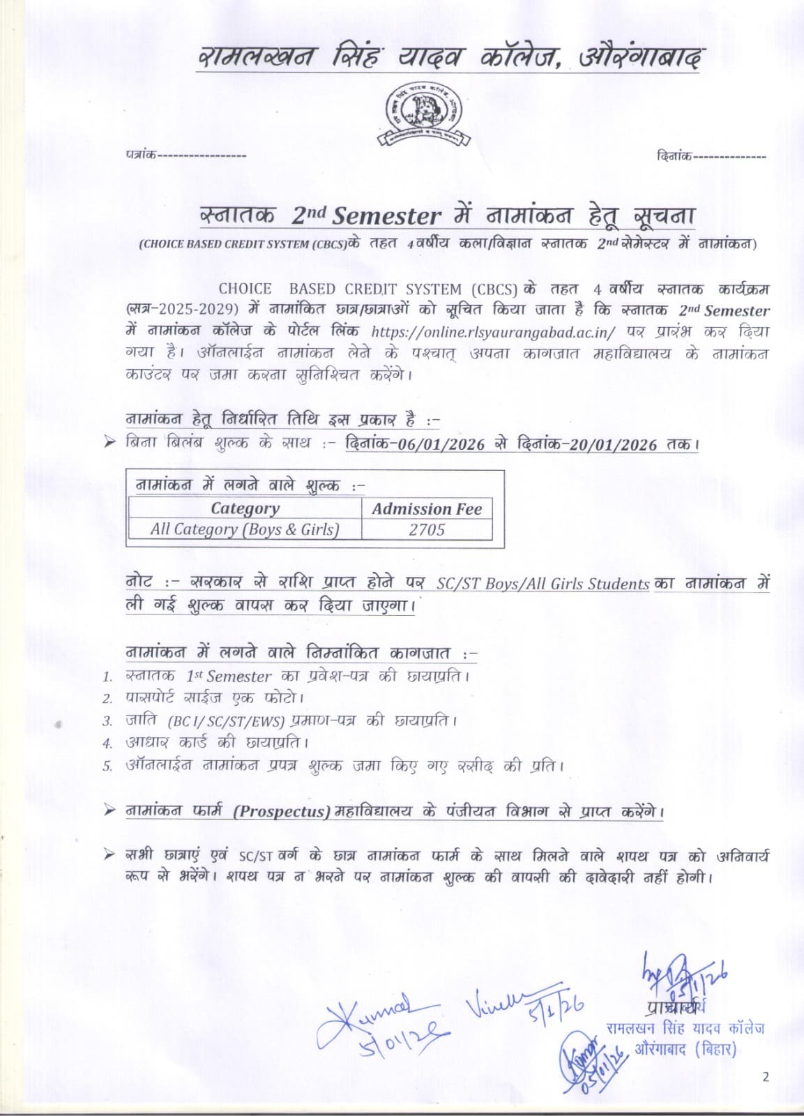 News : NOTICE REGARDING UG 2ND SEMESTER ADMISSION (2025-29)